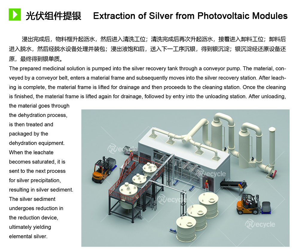 光伏板(太陽能電池板)通常包含銀作為導(dǎo)電層的材料。從光伏板中提取銀可以是為了回收和再利用這種有價(jià)值的材料。提銀的設(shè)備一般是個(gè)專業(yè)的設(shè)備線,濕法提煉的技術(shù),光伏板(太陽能電池板)通常包含銀作為導(dǎo)電層的材料。從光伏板中提取銀可以是為了回收和再利用這種有價(jià)值的材料。