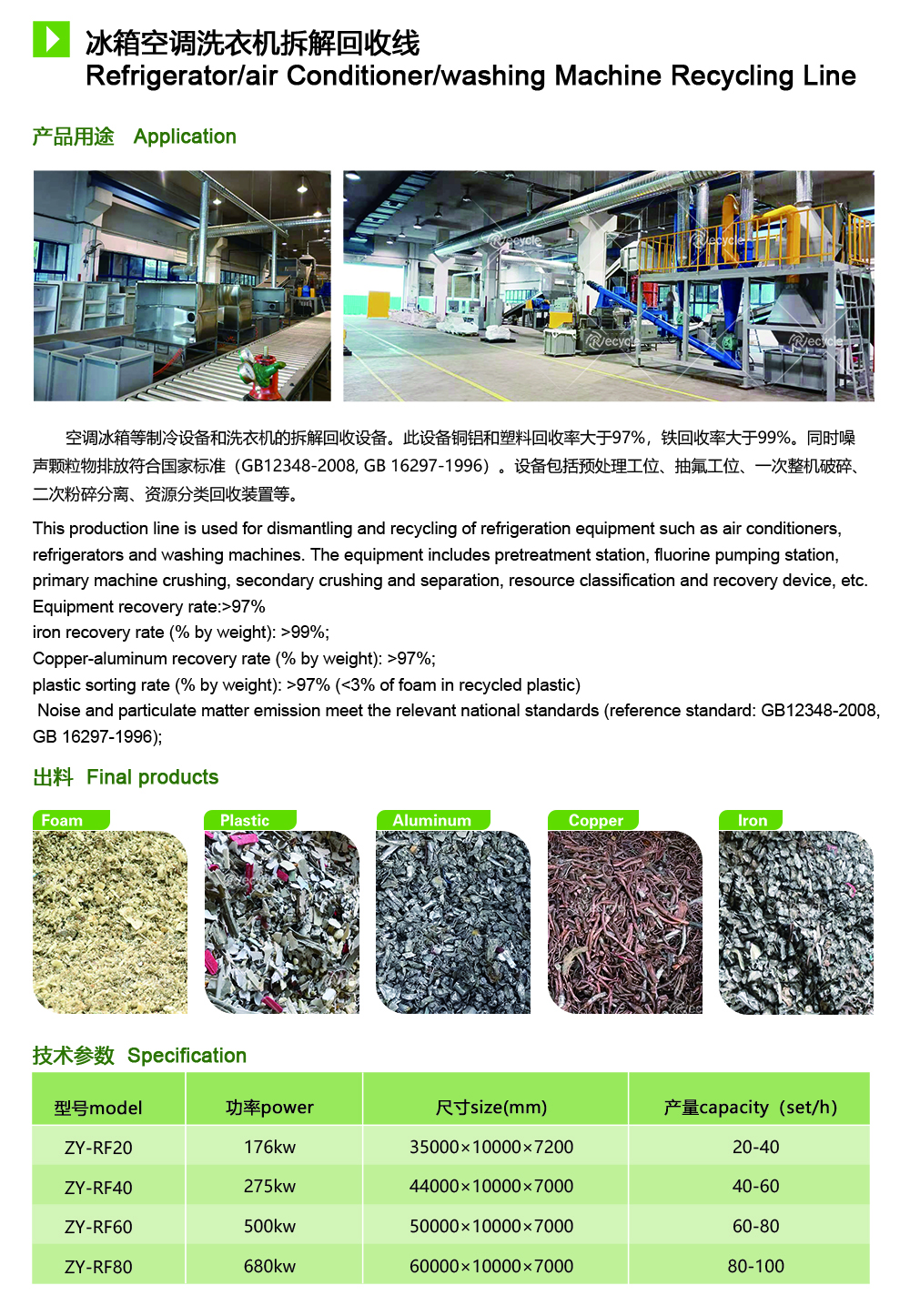 廢舊家電拆解線設(shè)備分為廢舊冰箱拆解線,廢舊洗衣機拆解線,廢舊空調(diào)拆解線,廢舊冰箱拆解線,廢舊電視電腦拆解等多種家電拆解全套設(shè)備。冰箱空調(diào)洗衣機拆解回收線是針對于空調(diào),冰箱,洗衣機三線合一的拆解處理線,可以將廢家電中的金屬有效分離。