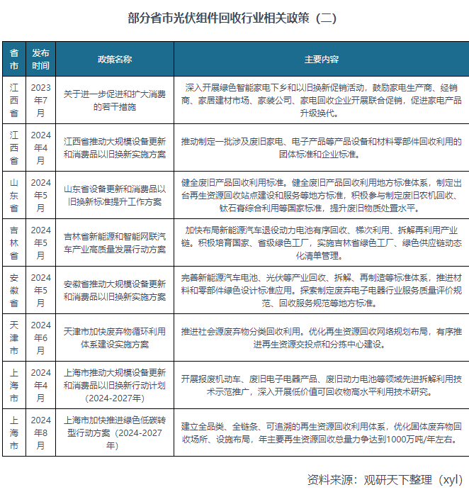 部分省市光伏組件回收行業(yè)相關(guān)政策!快來看看有你城市嗎?